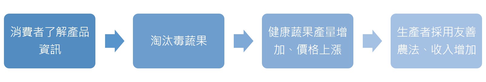 上述種種的問題主要咎因於消費者對所購買的農產品生產資訊的嚴重不足,如果消費者都十分清楚自己買到手上的農產品究竟來歷如何。那麼依據市場運作法則,那些很「毒」的蔬果自然會在市場上被淘汰,那些長的其貌不揚但是藥量較少的蔬果價格自然因需求增大而價格上漲。而生產者(農夫)這一端,自然會受到市場的影響而不得不控制農藥的使用量,或是尋找農藥的替代品(採用友善農法);採用友善農法的農友們也可以從生產的農產品價格上漲,得到應有的鼓勵和回報。