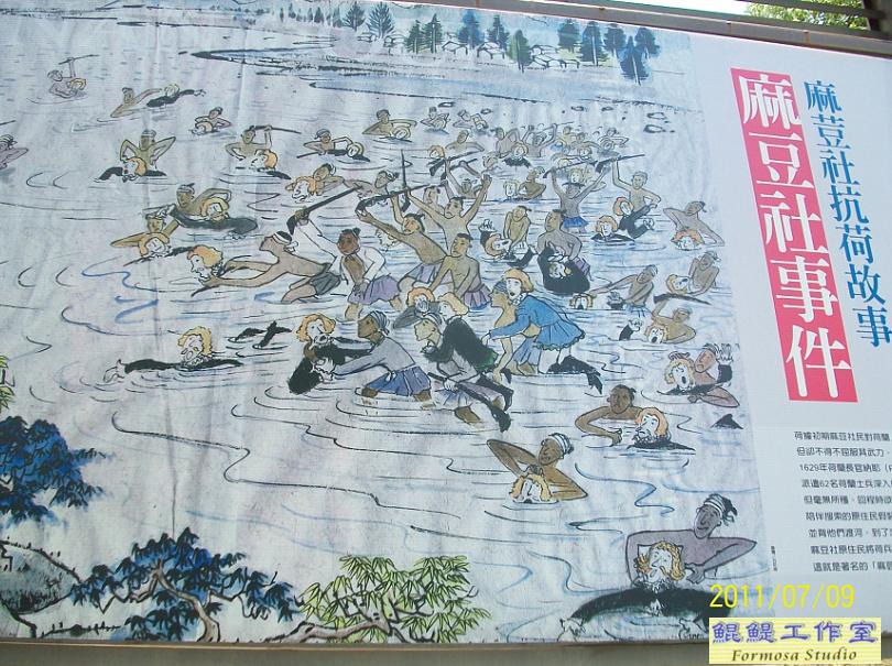 事件經過:1629 年7 月13 日,一支荷蘭特遣隊為搜捕漢人海盜而進入麻豆社,起初麻豆社人善意招待公司士兵,在